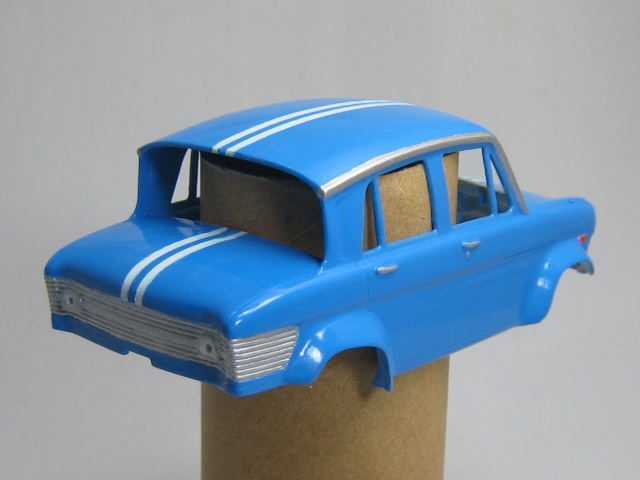 ・2本の白いラインを引こうとマスキングテープをしたまでは良かったのですが、いざホワイトを塗ったら下の青色が滲んで来てしまった。