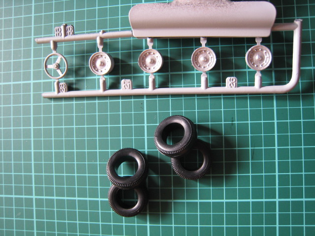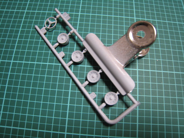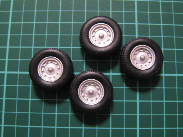 まずは、タイヤから。ホイールは、プラが黒い色じゃから サフするかの。」